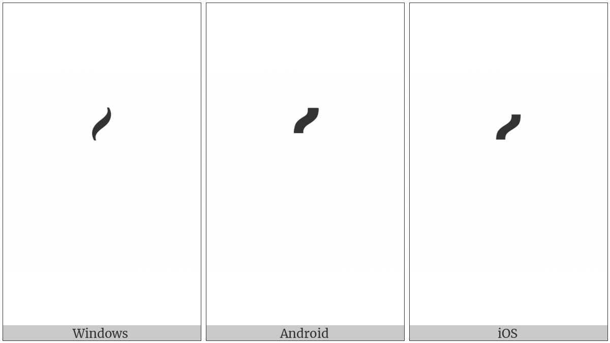 The image below shows how the “Armenian Exclamation Mark” symbol might look like on different operating systems. If the font in which this web site is displayed does not contain the symbol and there is no fallback font able to render it, you can use the image below to get an idea of what it should look like.
