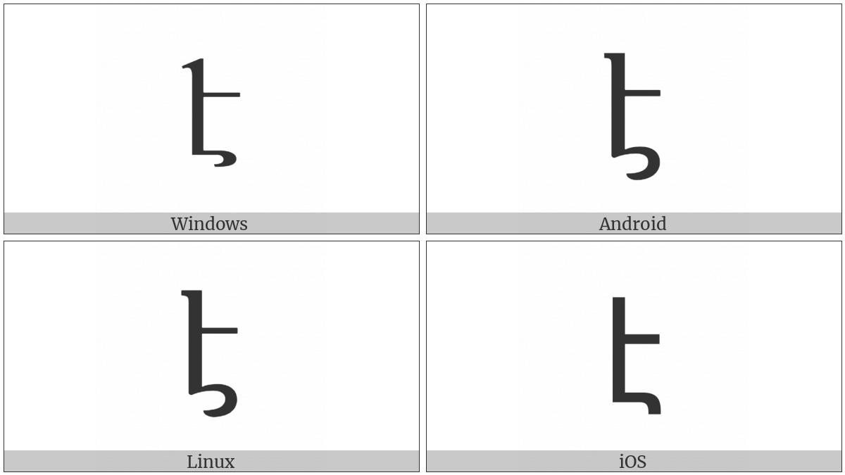 The image below shows how the “Armenian Small Letter Eh” symbol might look like on different operating systems. If the font in which this web site is displayed does not contain the symbol and there is no fallback font able to render it, you can use the image below to get an idea of what it should look like.
