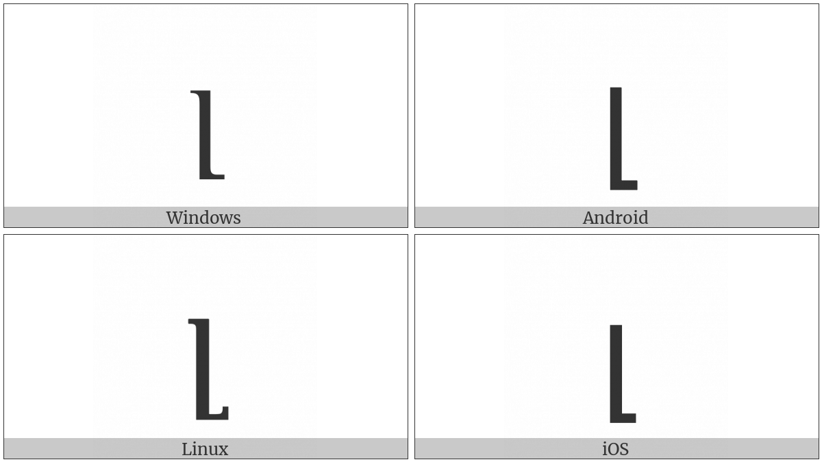 The image below shows how the “Armenian Small Letter Liwn” symbol might look like on different operating systems. If the font in which this web site is displayed does not contain the symbol and there is no fallback font able to render it, you can use the image below to get an idea of what it should look like.