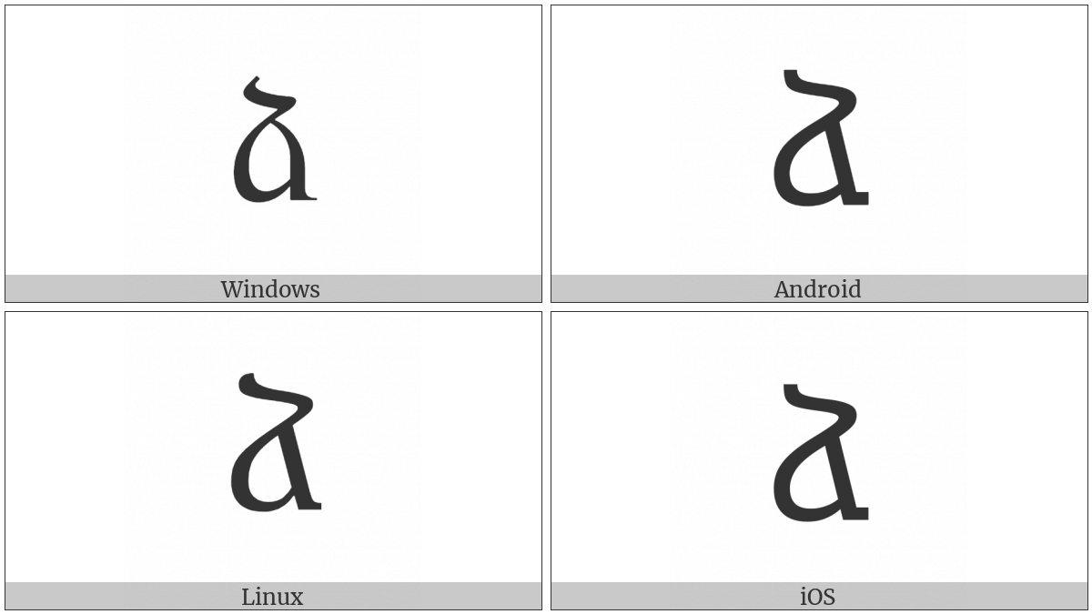 The image below shows how the “Armenian Small Letter Ja” symbol might look like on different operating systems. If the font in which this web site is displayed does not contain the symbol and there is no fallback font able to render it, you can use the image below to get an idea of what it should look like.