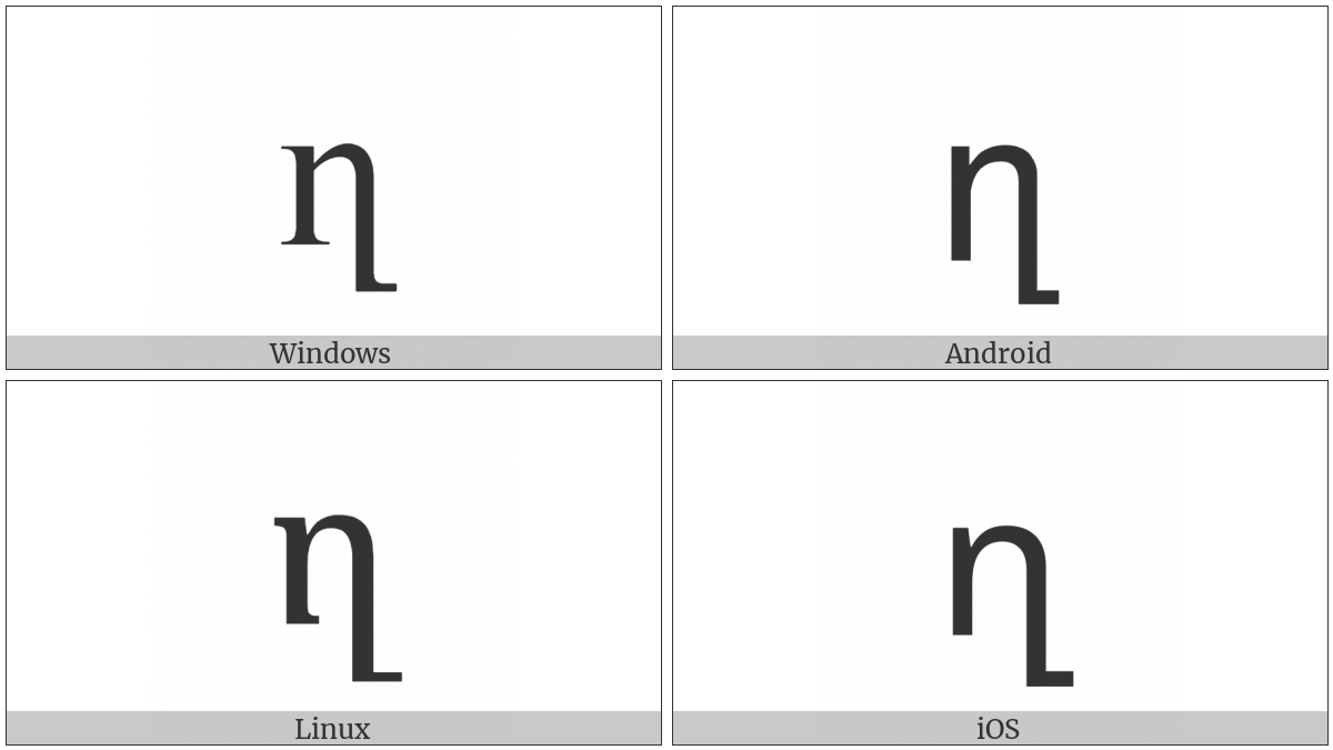 The image below shows how the “Armenian Small Letter Ghad” symbol might look like on different operating systems. If the font in which this web site is displayed does not contain the symbol and there is no fallback font able to render it, you can use the image below to get an idea of what it should look like.