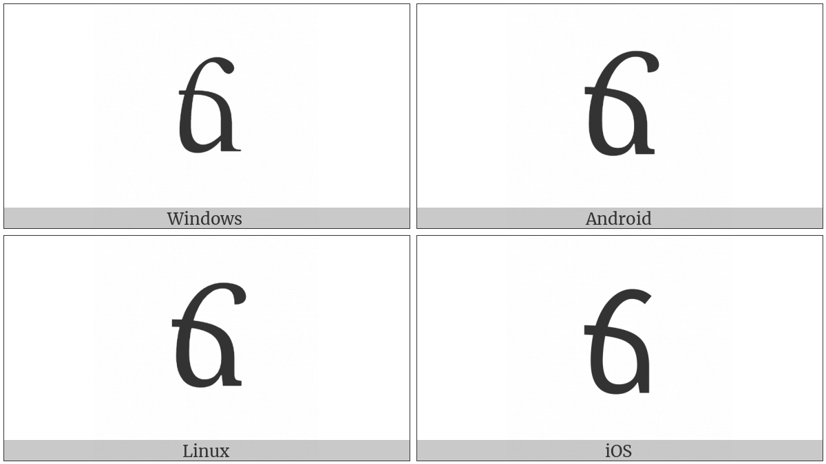 The image below shows how the “Armenian Small Letter Cheh” symbol might look like on different operating systems. If the font in which this web site is displayed does not contain the symbol and there is no fallback font able to render it, you can use the image below to get an idea of what it should look like.