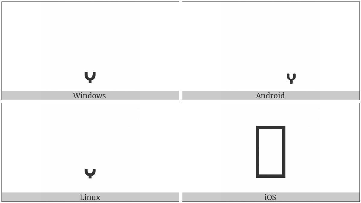 The image below shows how the “Hebrew Accent Atnah Hafukh” symbol might look like on different operating systems. If the font in which this web site is displayed does not contain the symbol and there is no fallback font able to render it, you can use the image below to get an idea of what it should look like.