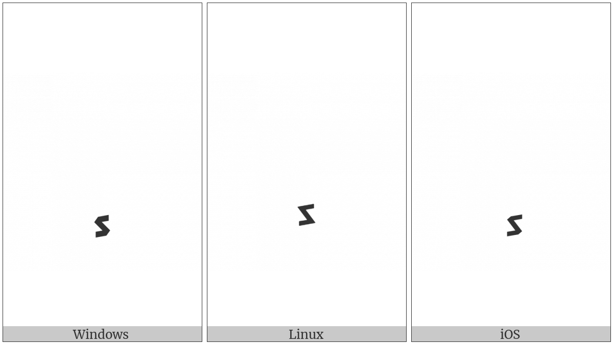 The image below shows how the “Hebrew Accent Darga” symbol might look like on different operating systems. If the font in which this web site is displayed does not contain the symbol and there is no fallback font able to render it, you can use the image below to get an idea of what it should look like.