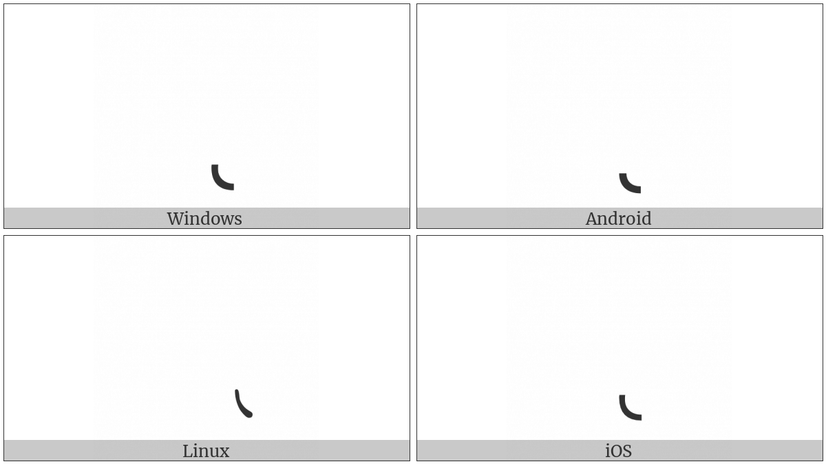 The image below shows how the “Hebrew Accent Dehi” symbol might look like on different operating systems. If the font in which this web site is displayed does not contain the symbol and there is no fallback font able to render it, you can use the image below to get an idea of what it should look like.