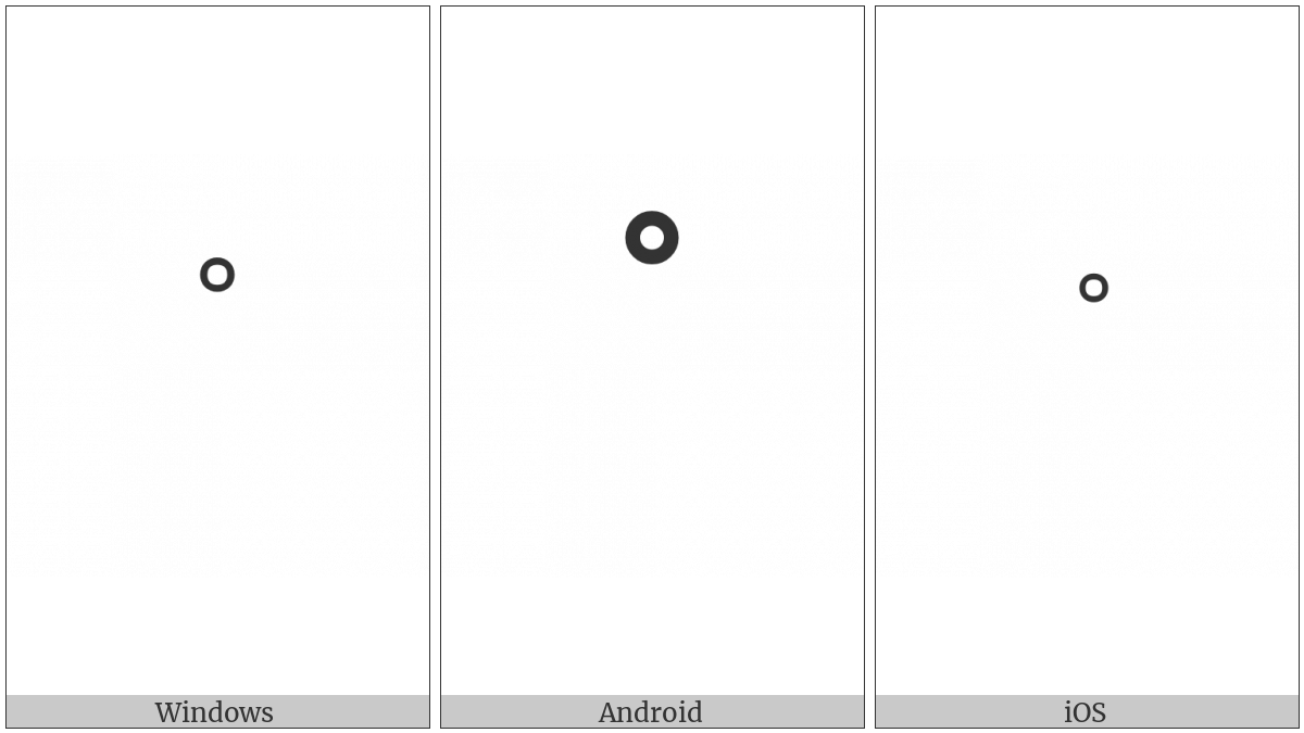 The image below shows how the “Hebrew Mark Masora Circle” symbol might look like on different operating systems. If the font in which this web site is displayed does not contain the symbol and there is no fallback font able to render it, you can use the image below to get an idea of what it should look like.