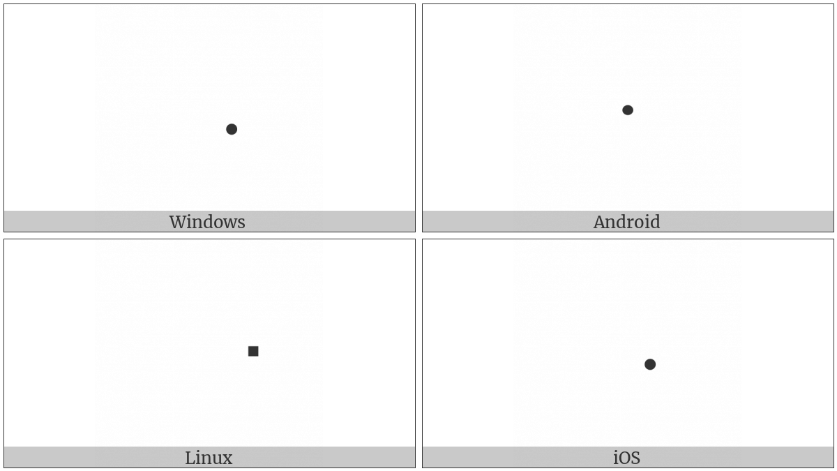 The image below shows how the “Hebrew Point Dagesh Or Mapiq” symbol might look like on different operating systems. If the font in which this web site is displayed does not contain the symbol and there is no fallback font able to render it, you can use the image below to get an idea of what it should look like.