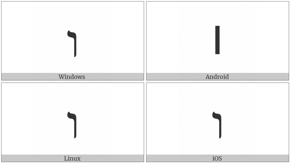 The image below shows how the “Hebrew Letter Vav” symbol might look like on different operating systems. If the font in which this web site is displayed does not contain the symbol and there is no fallback font able to render it, you can use the image below to get an idea of what it should look like.