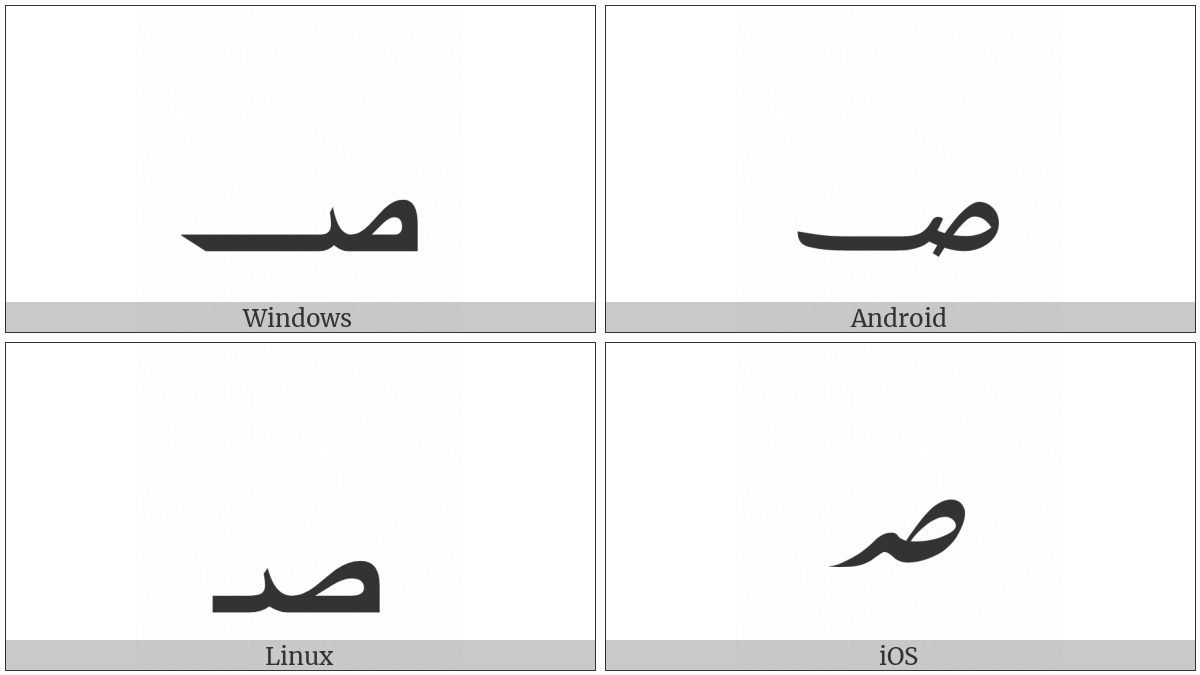 The image below shows how the “Arabic Sign Safha” symbol might look like on different operating systems. If the font in which this web site is displayed does not contain the symbol and there is no fallback font able to render it, you can use the image below to get an idea of what it should look like.