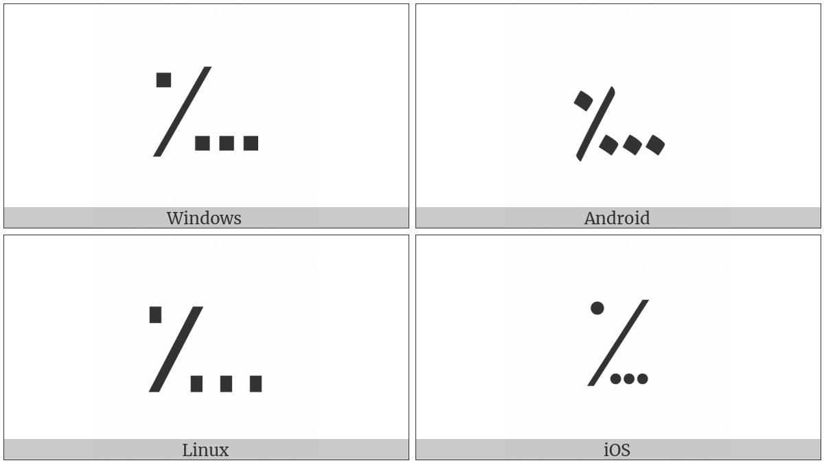 The image below shows how the “Arabic-Indic Per Ten Thousand Sign” symbol might look like on different operating systems. If the font in which this web site is displayed does not contain the symbol and there is no fallback font able to render it, you can use the image below to get an idea of what it should look like.