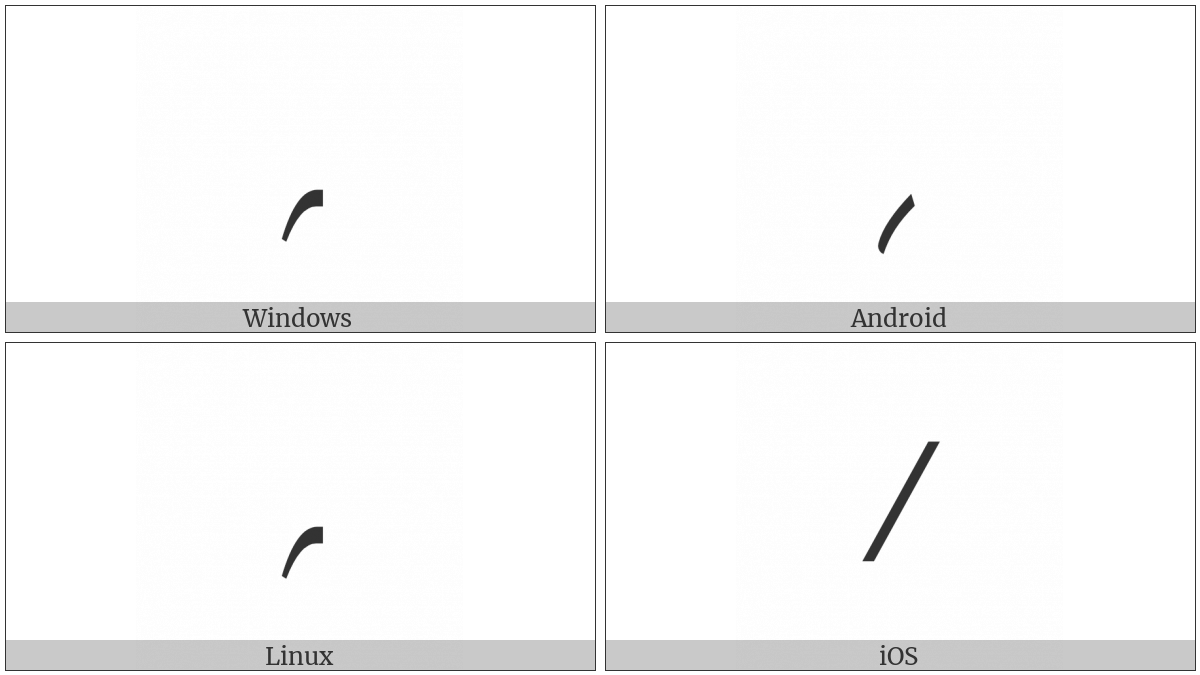 The image below shows how the “Arabic Date Separator” symbol might look like on different operating systems. If the font in which this web site is displayed does not contain the symbol and there is no fallback font able to render it, you can use the image below to get an idea of what it should look like.