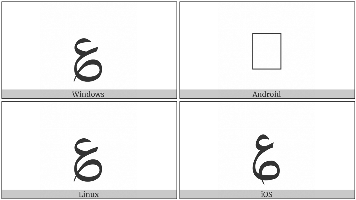 The image below shows how the “Arabic Sign Misra” symbol might look like on different operating systems. If the font in which this web site is displayed does not contain the symbol and there is no fallback font able to render it, you can use the image below to get an idea of what it should look like.