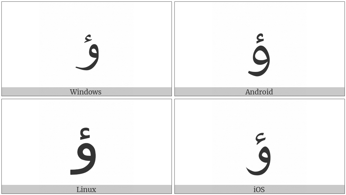 “Arabic Letter Waw With Hamza Above” on various operating systems