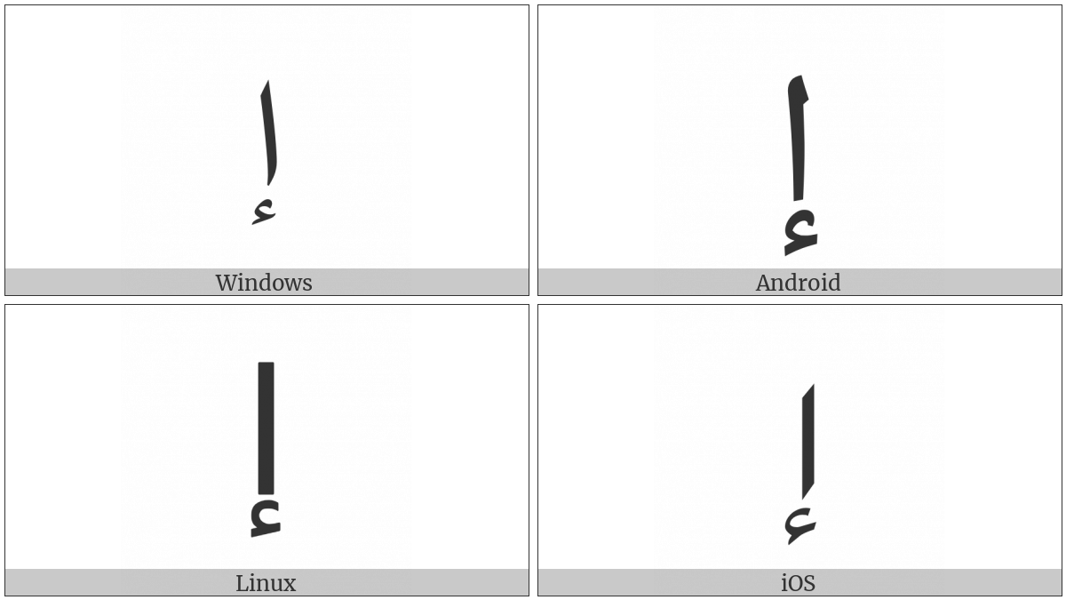 “Arabic Letter Alef With Hamza Below” on various operating systems