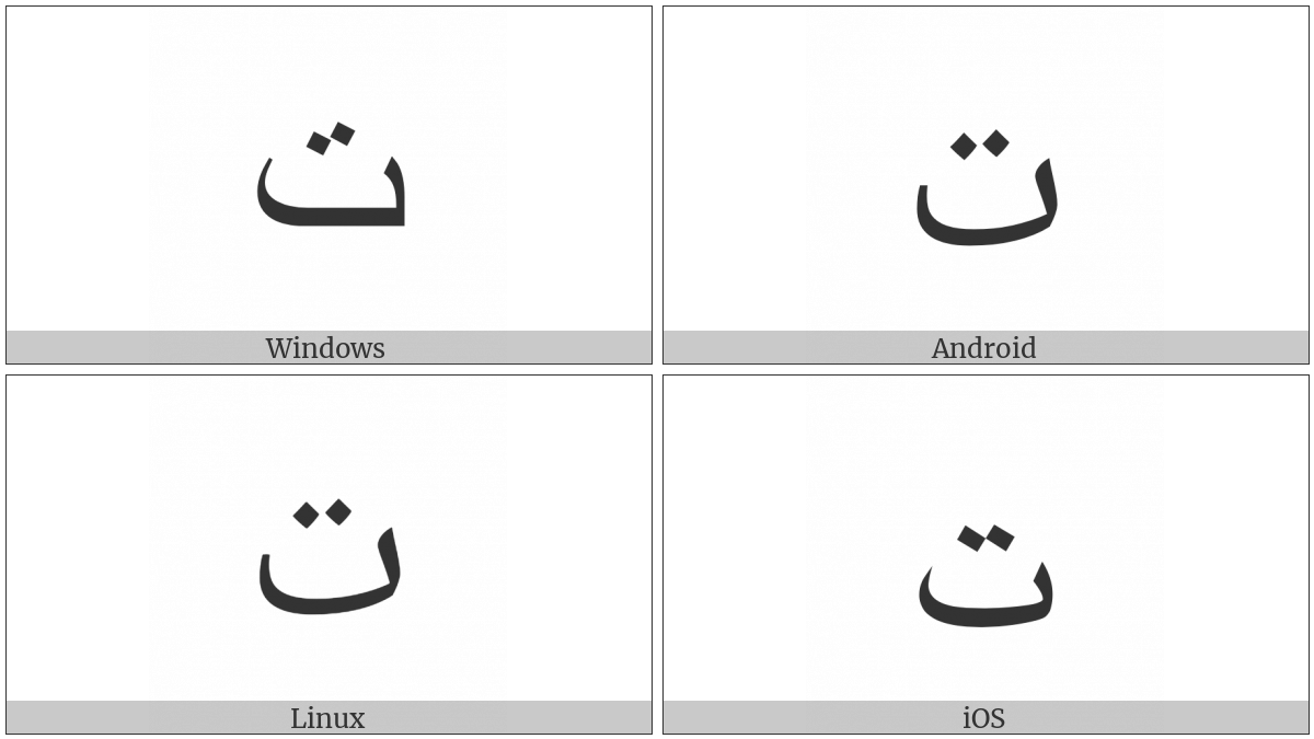 “Arabic Letter Teh” on various operating systems
