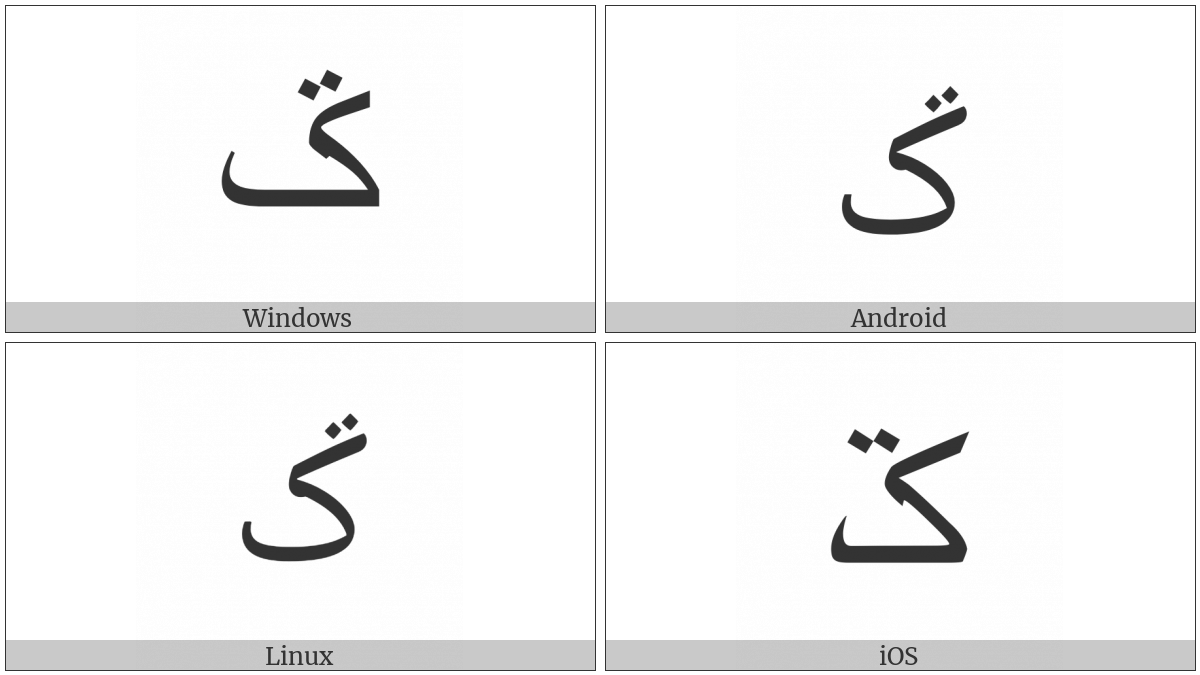“Arabic Letter Keheh With Two Dots Above” on various operating systems