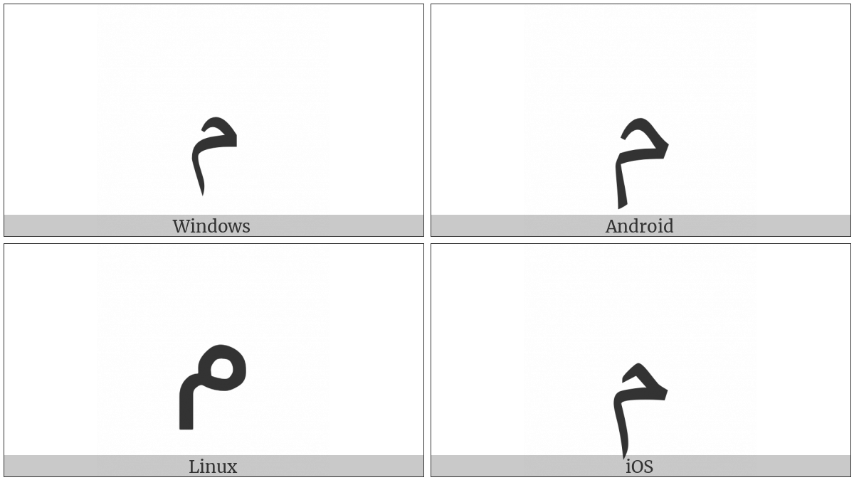 The image below shows how the “Arabic Letter Meem” symbol might look like on different operating systems. If the font in which this web site is displayed does not contain the symbol and there is no fallback font able to render it, you can use the image below to get an idea of what it should look like.