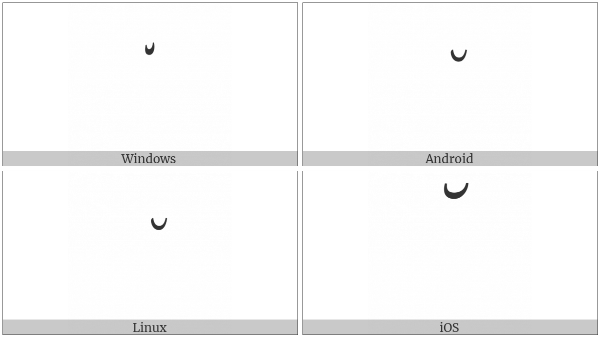 The image below shows how the “Arabic Mark Noon Ghunna” symbol might look like on different operating systems. If the font in which this web site is displayed does not contain the symbol and there is no fallback font able to render it, you can use the image below to get an idea of what it should look like.