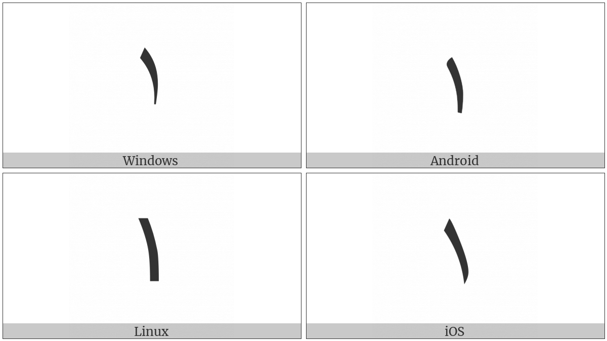 Please note that the image above is computer generated and not all images are curated, so certain errors might occur. Additionally, the operating systems change on occasions the default fonts they provide, so the character might not look the same on your operating system.