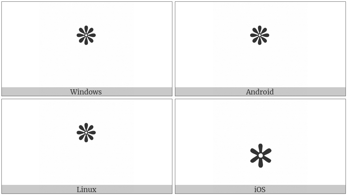 The image below shows how the “Arabic Five Pointed Star” symbol might look like on different operating systems. If the font in which this web site is displayed does not contain the symbol and there is no fallback font able to render it, you can use the image below to get an idea of what it should look like.