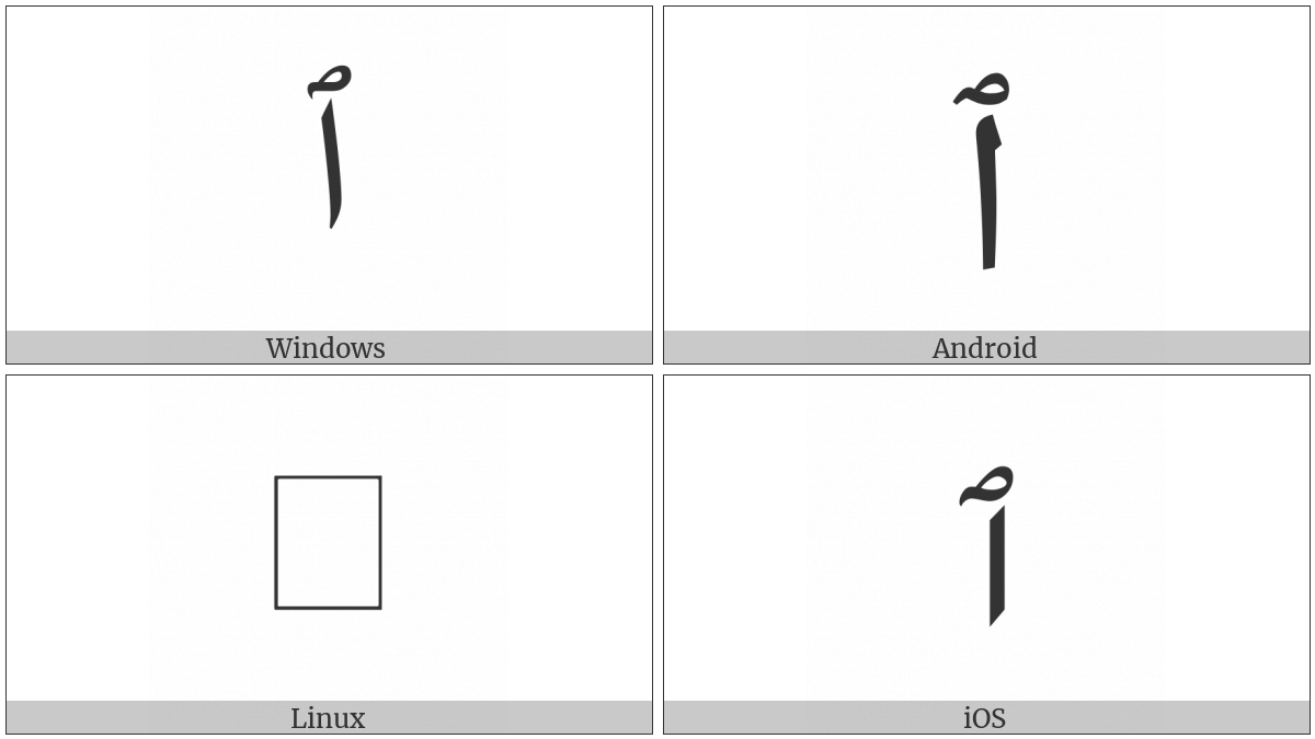 The image below shows how the “Arabic Letter Alef Wasla” symbol might look like on different operating systems. If the font in which this web site is displayed does not contain the symbol and there is no fallback font able to render it, you can use the image below to get an idea of what it should look like.