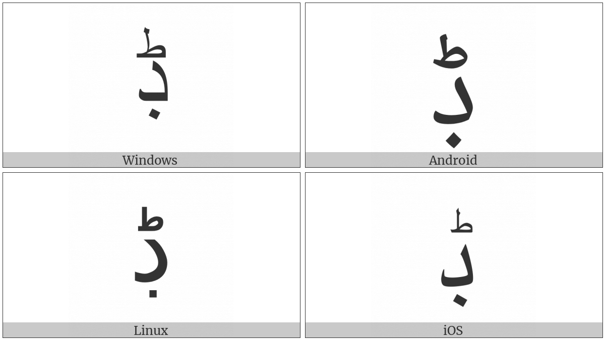 “Arabic Letter Dal With Dot Below And Small Tah” on various operating systems