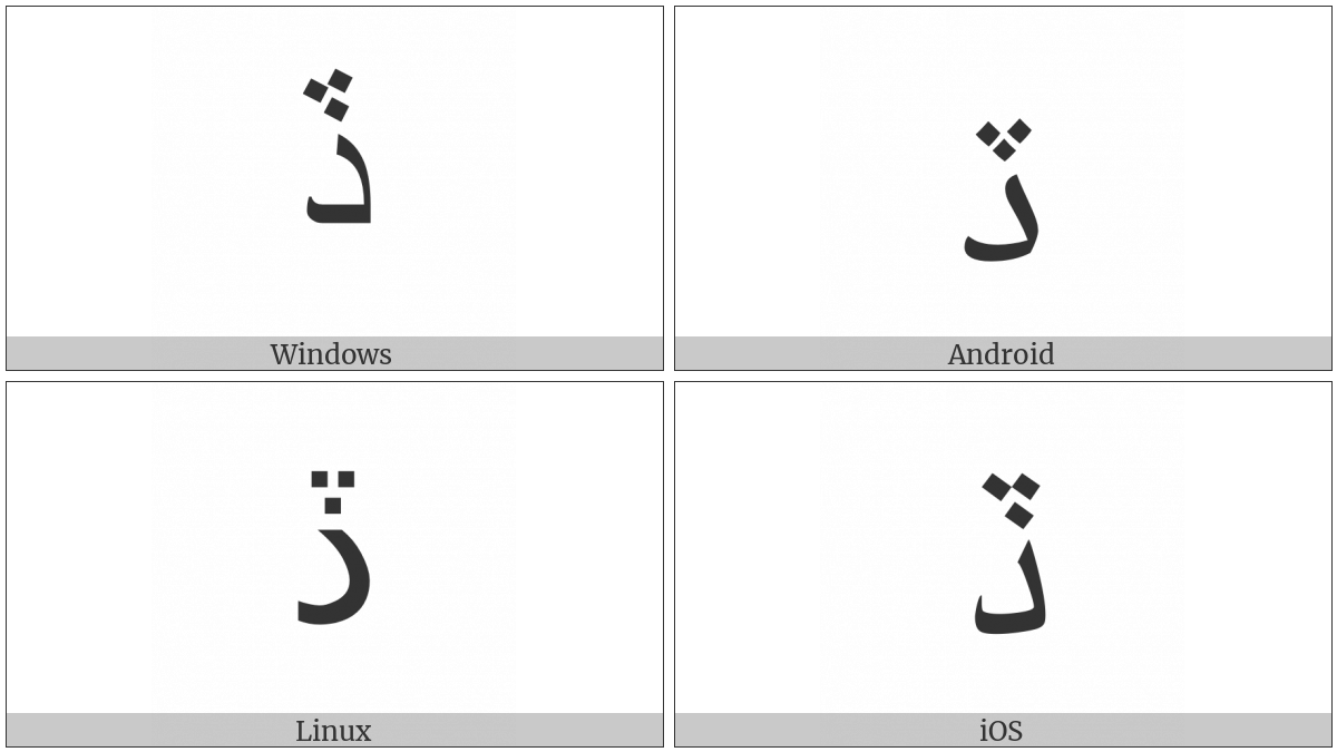 “Arabic Letter Dal With Three Dots Above Downwards” on various operating systems