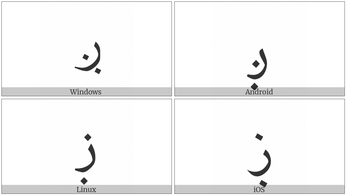 “Arabic Letter Reh With Dot Below And Dot Above” on various operating systems