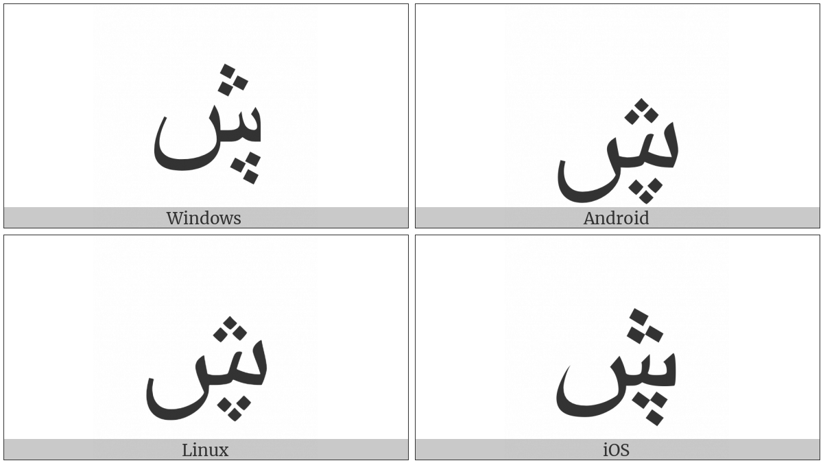 “Arabic Letter Seen With Three Dots Below And Three Dots Above” on various operating systems