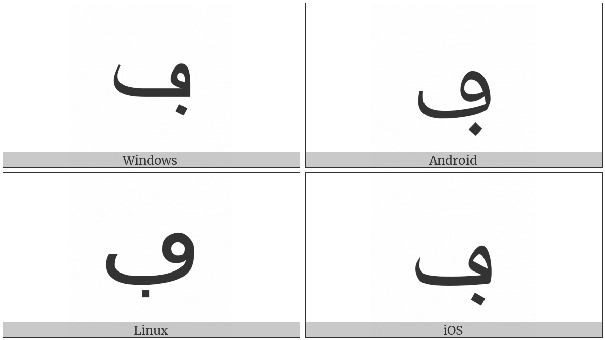 “Arabic Letter Feh With Dot Moved Below” on various operating systems