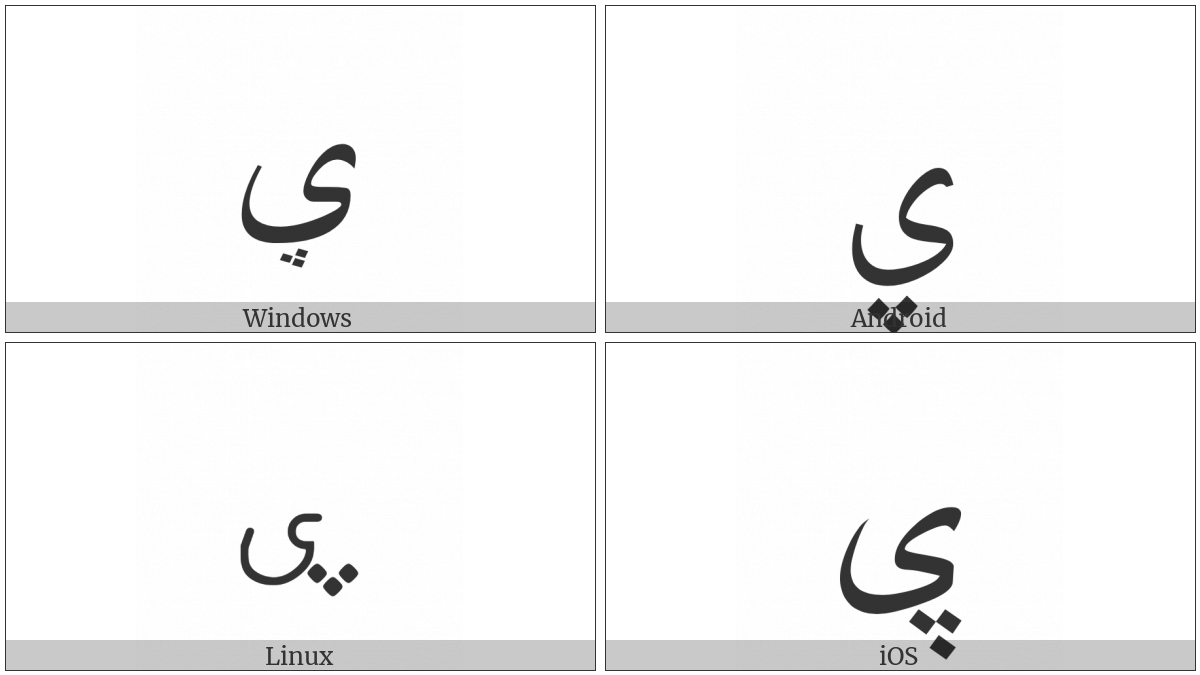 “Arabic Letter Yeh With Three Dots Below” on various operating systems