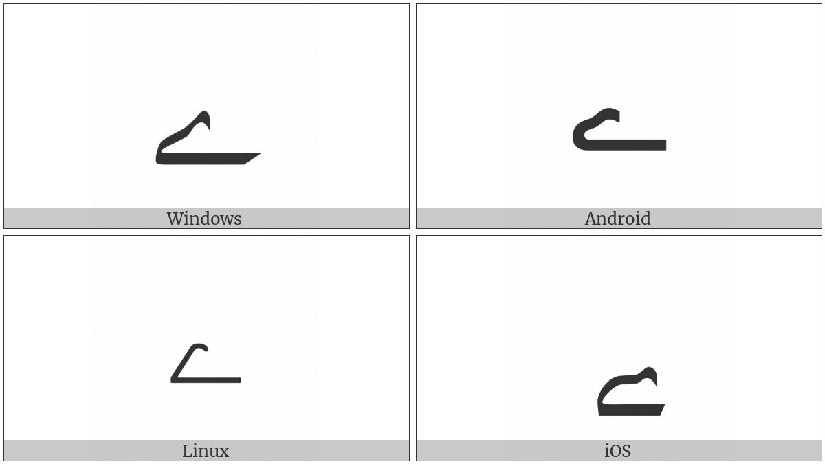 The image below shows how the “Arabic Letter Yeh Barree” symbol might look like on different operating systems. If the font in which this web site is displayed does not contain the symbol and there is no fallback font able to render it, you can use the image below to get an idea of what it should look like.