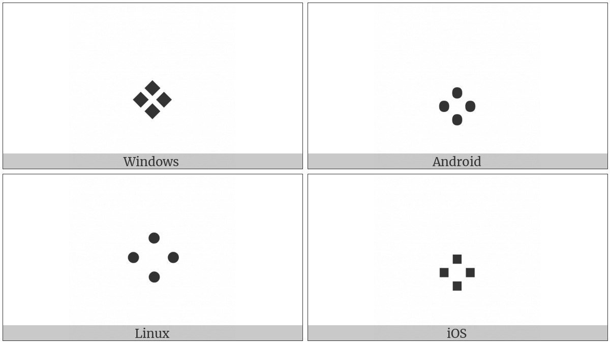 The image below shows how the “Syriac End Of Paragraph” symbol might look like on different operating systems. If the font in which this web site is displayed does not contain the symbol and there is no fallback font able to render it, you can use the image below to get an idea of what it should look like.