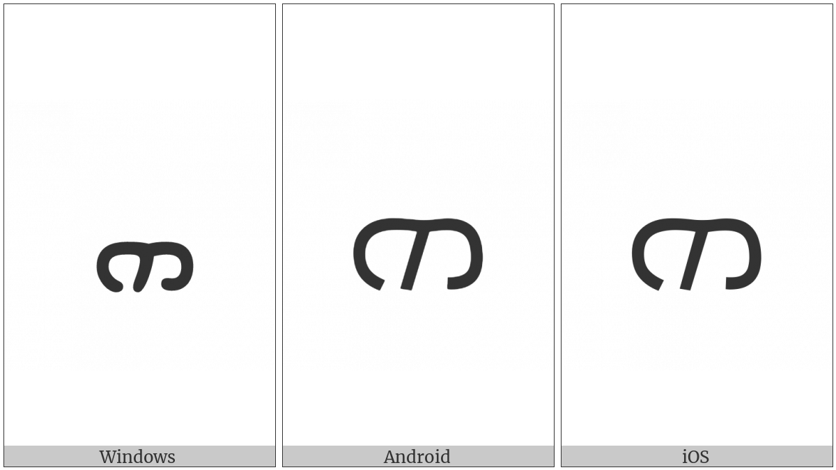 The image below shows how the “Syriac Letter He” symbol might look like on different operating systems. If the font in which this web site is displayed does not contain the symbol and there is no fallback font able to render it, you can use the image below to get an idea of what it should look like.