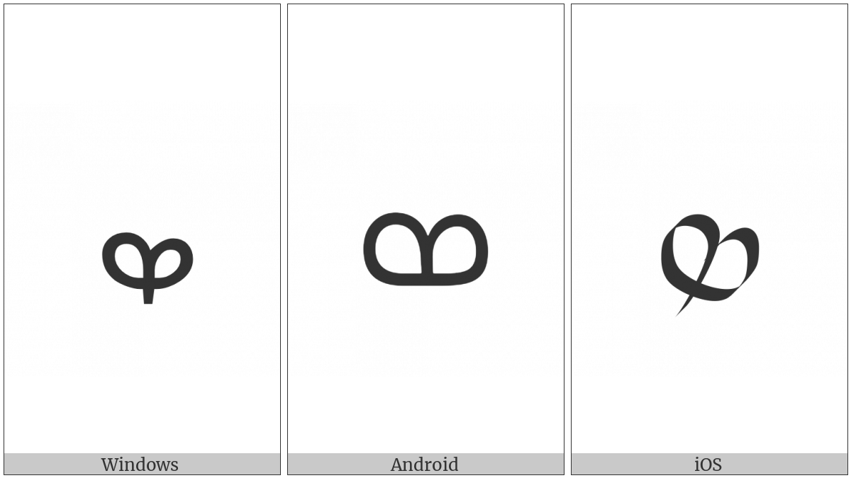 The image below shows how the “Syriac Letter Final Semkath” symbol might look like on different operating systems. If the font in which this web site is displayed does not contain the symbol and there is no fallback font able to render it, you can use the image below to get an idea of what it should look like.