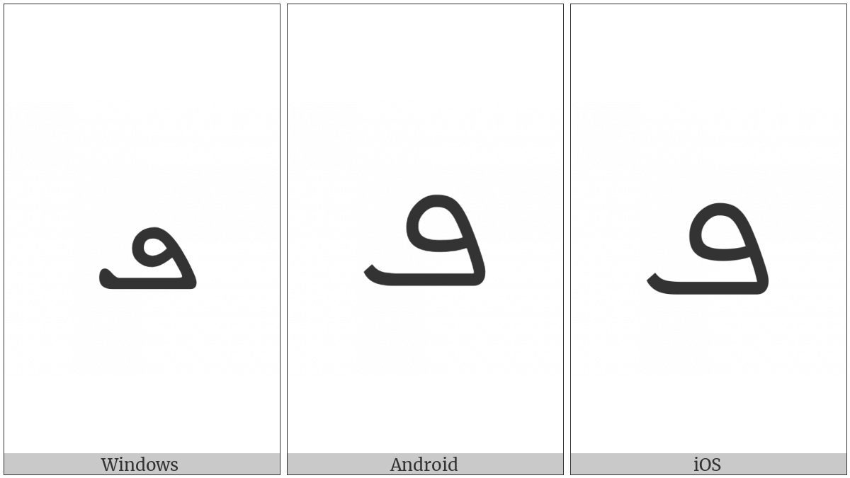 The image below shows how the “Syriac Letter Pe” symbol might look like on different operating systems. If the font in which this web site is displayed does not contain the symbol and there is no fallback font able to render it, you can use the image below to get an idea of what it should look like.