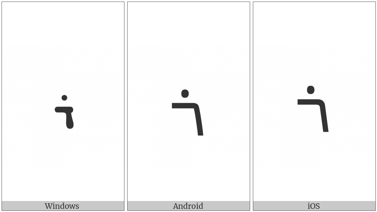 The image below shows how the “Syriac Letter Rish” symbol might look like on different operating systems. If the font in which this web site is displayed does not contain the symbol and there is no fallback font able to render it, you can use the image below to get an idea of what it should look like.