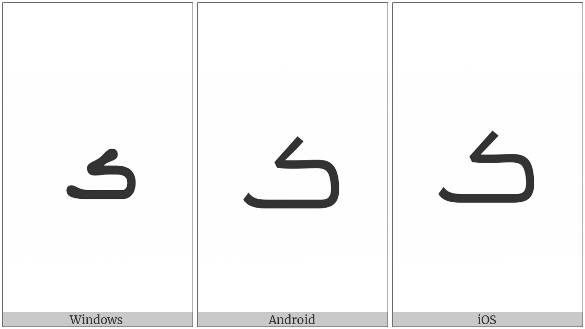 The image below shows how the “Syriac Letter Persian Bheth” symbol might look like on different operating systems. If the font in which this web site is displayed does not contain the symbol and there is no fallback font able to render it, you can use the image below to get an idea of what it should look like.