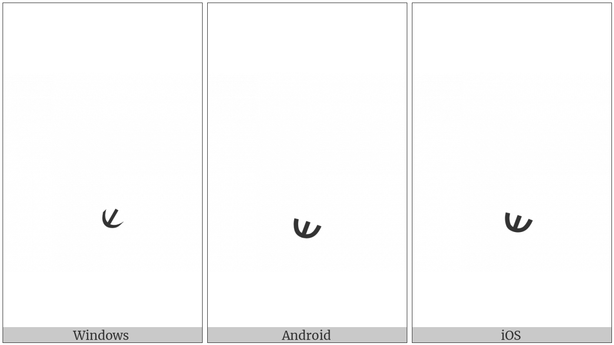 The image below shows how the “Syriac Rbasa Below” symbol might look like on different operating systems. If the font in which this web site is displayed does not contain the symbol and there is no fallback font able to render it, you can use the image below to get an idea of what it should look like.