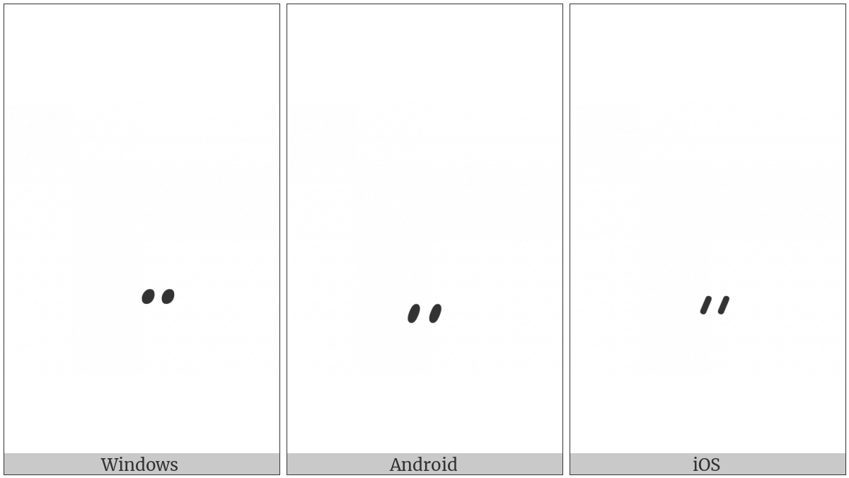 The image below shows how the “Syriac Dotted Zlama Horizontal” symbol might look like on different operating systems. If the font in which this web site is displayed does not contain the symbol and there is no fallback font able to render it, you can use the image below to get an idea of what it should look like.
