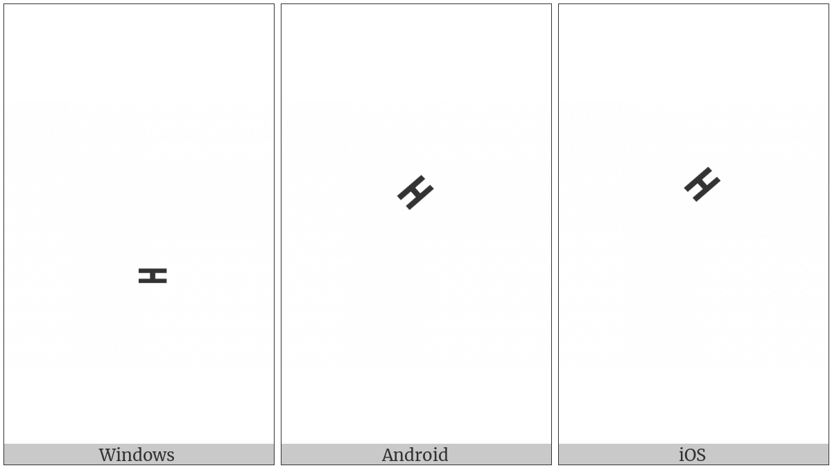 The image below shows how the “Syriac Hbasa Above” symbol might look like on different operating systems. If the font in which this web site is displayed does not contain the symbol and there is no fallback font able to render it, you can use the image below to get an idea of what it should look like.