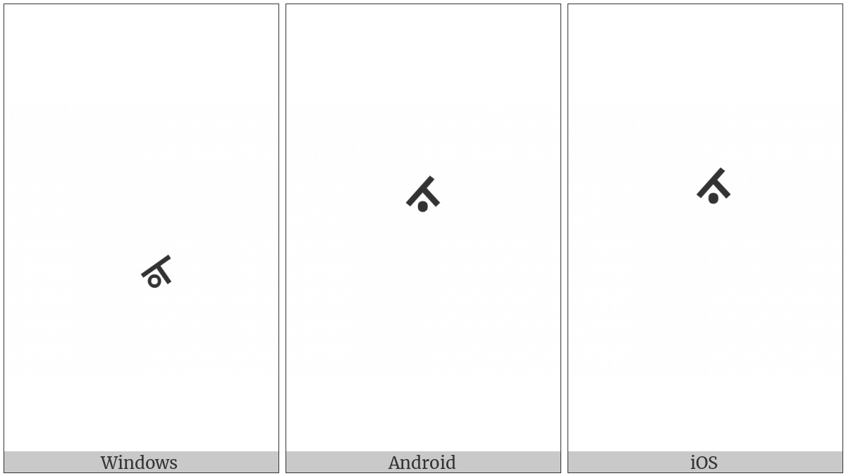 The image below shows how the “Syriac Esasa Above” symbol might look like on different operating systems. If the font in which this web site is displayed does not contain the symbol and there is no fallback font able to render it, you can use the image below to get an idea of what it should look like.