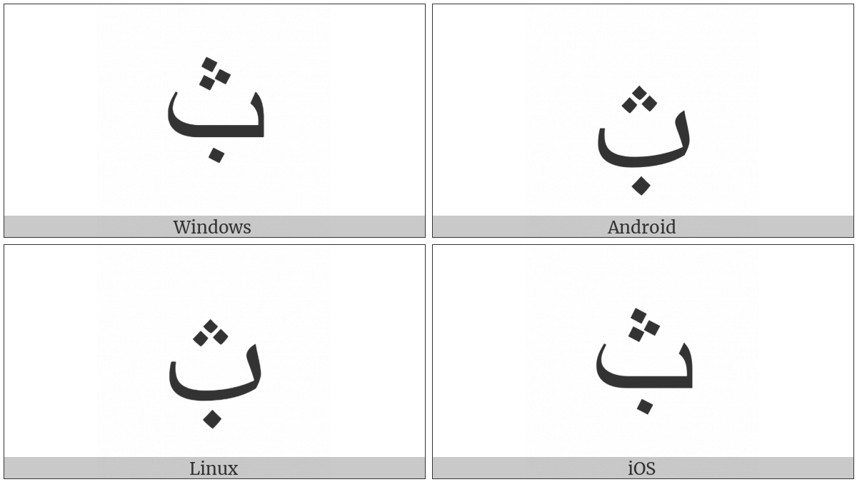 “Arabic Letter Beh With Dot Below And Three Dots Above” on various operating systems
