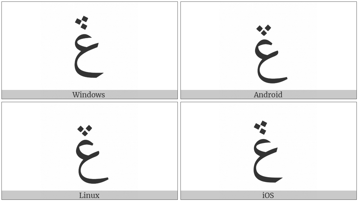 “Arabic Letter Ain With Three Dots Pointing Downwards Above” on various operating systems