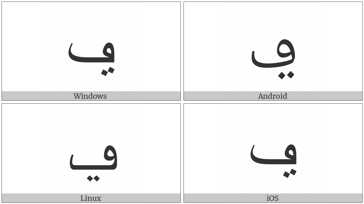 “Arabic Letter Feh With Two Dots Below” on various operating systems