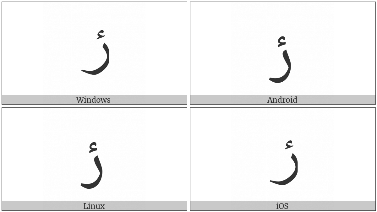 “Arabic Letter Reh With Hamza Above” on various operating systems