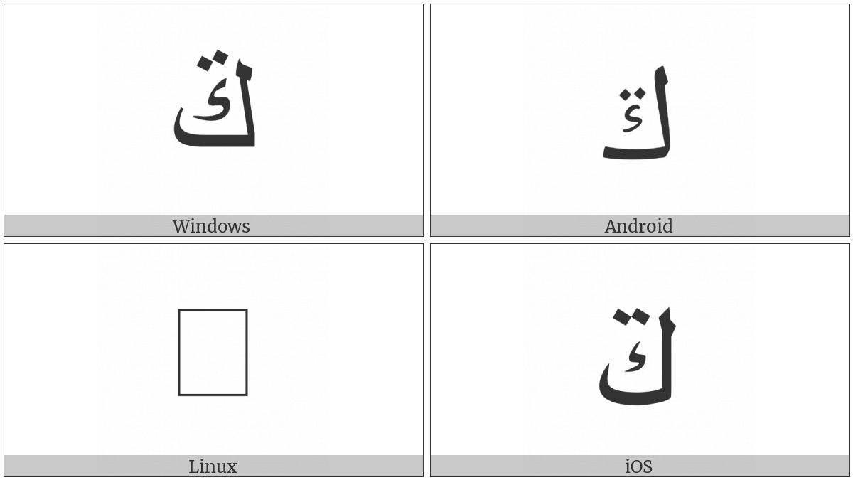 “Arabic Letter Kaf With Two Dots Above” on various operating systems