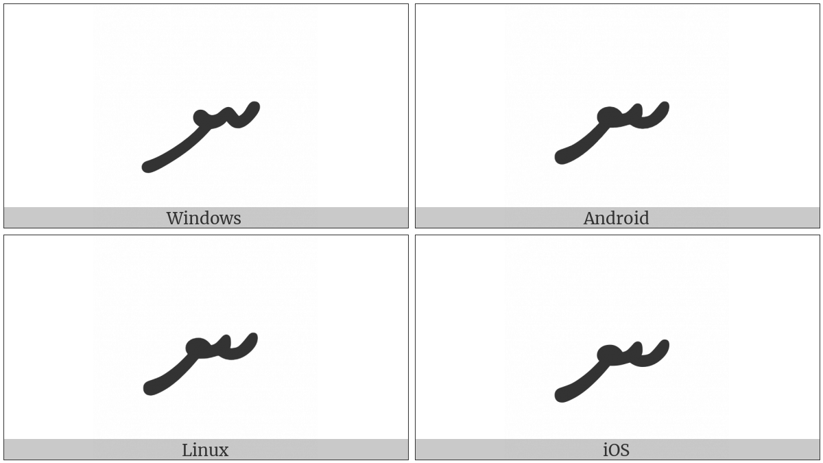 The image below shows how the “Thaana Letter Noonu” symbol might look like on different operating systems. If the font in which this web site is displayed does not contain the symbol and there is no fallback font able to render it, you can use the image below to get an idea of what it should look like.