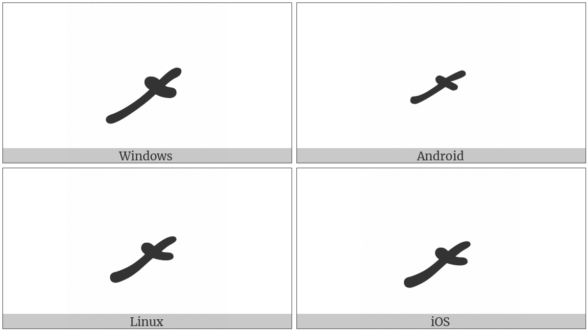 The image below shows how the “Thaana Letter Raa” symbol might look like on different operating systems. If the font in which this web site is displayed does not contain the symbol and there is no fallback font able to render it, you can use the image below to get an idea of what it should look like.