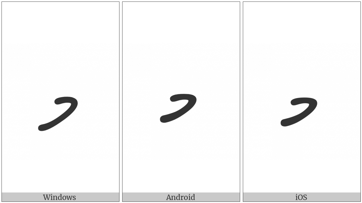 The image below shows how the “Thaana Letter Meemu” symbol might look like on different operating systems. If the font in which this web site is displayed does not contain the symbol and there is no fallback font able to render it, you can use the image below to get an idea of what it should look like.